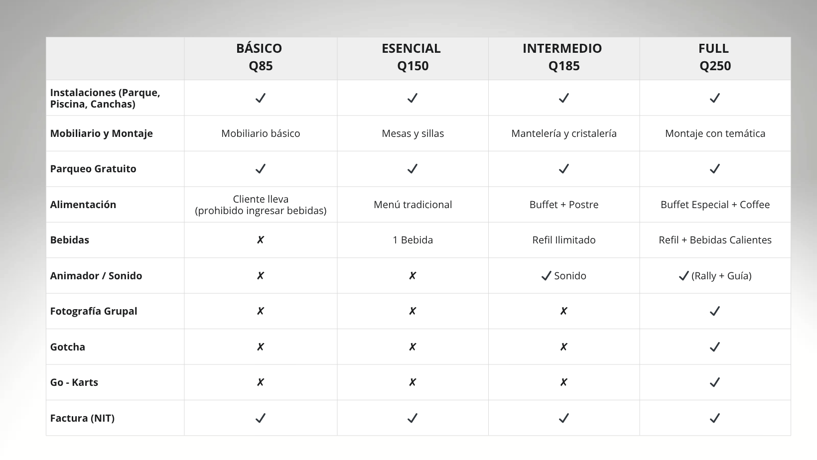 Comunicate con nosotros para poder ayudarte a organizar tu evento, haremos lo que sea necesario para que tu actividad sea todo un éxito. Además todos nuestos combos y paquetes son modificables según los requerimientos.
